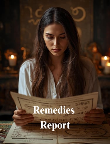 Based on your chart, we suggest practical remedies such as mantras, colors, symbolic practices, lifestyle adjustments, and energy-balancing techniques.