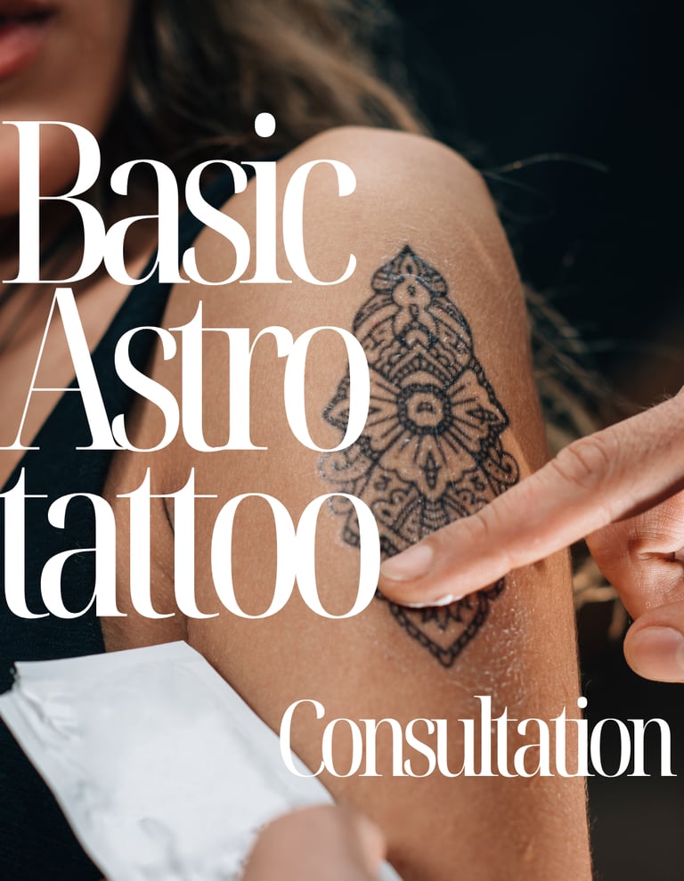 With a Basic Astro Tattoo Report, you discover tattoo symbols that align with your birth chart, planets & cosmic purpose, helping your body art become a source of strength, clarity & alignment.