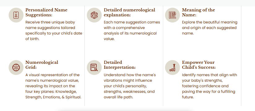 Discover the invaluable insights offered in our Personalized Baby Name Report to help you choose the perfect name for your little one. Our report provides a wealth of guidance, ensuring you select the most auspicious and meaningful name for your precious bundle of joy. Explore our comprehensive report to make an informed decision that will resonate with your family's values and beliefs, setting a positive tone for your baby's future.