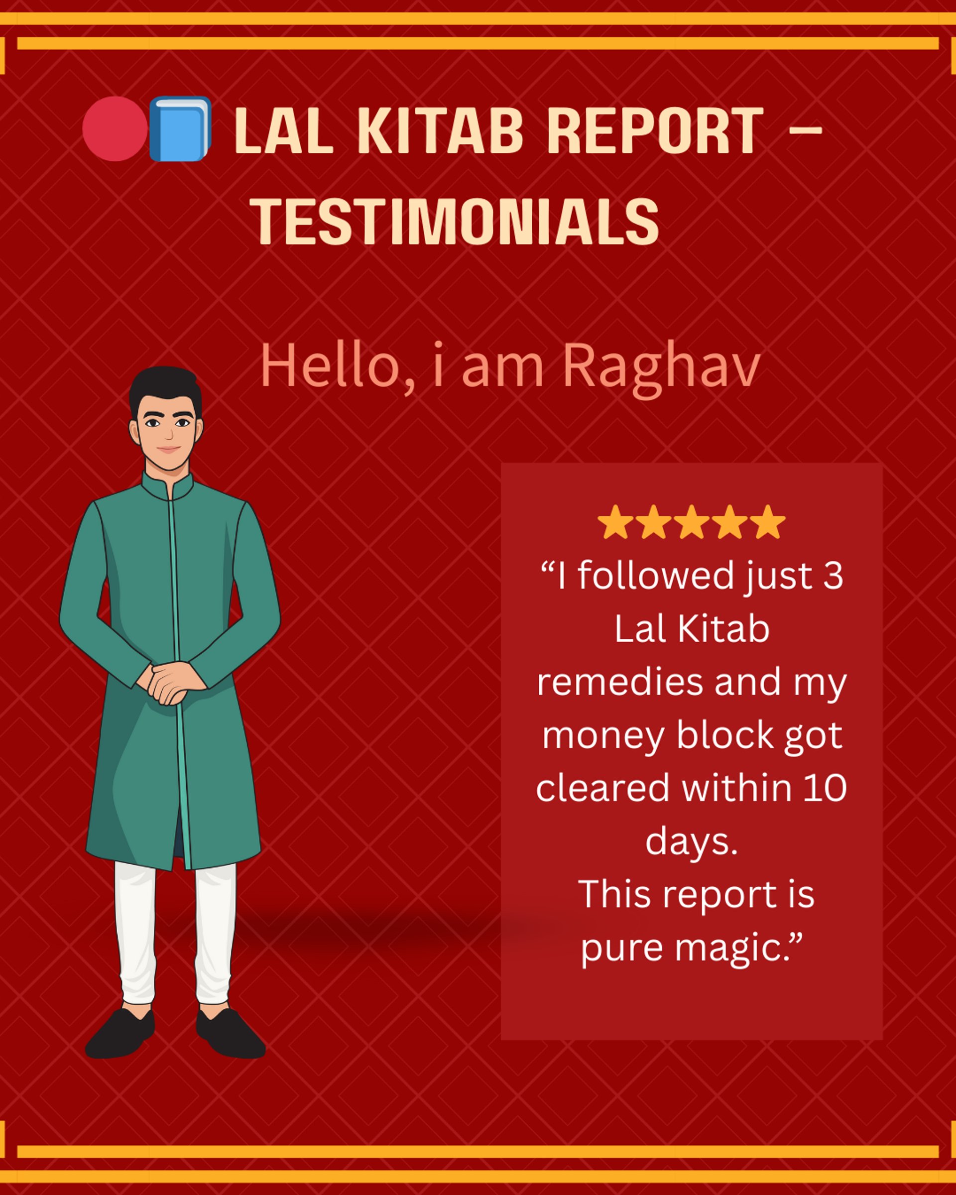 A Lal Kitab Report is a personalized astrology report based on the principles of Lal Kitab, a practical branch of Vedic astrology that focuses on simple remedies and daily-life corrections. It explains how planetary imbalances affect different areas of life such as career, finances, relationships, health, and mental peace.